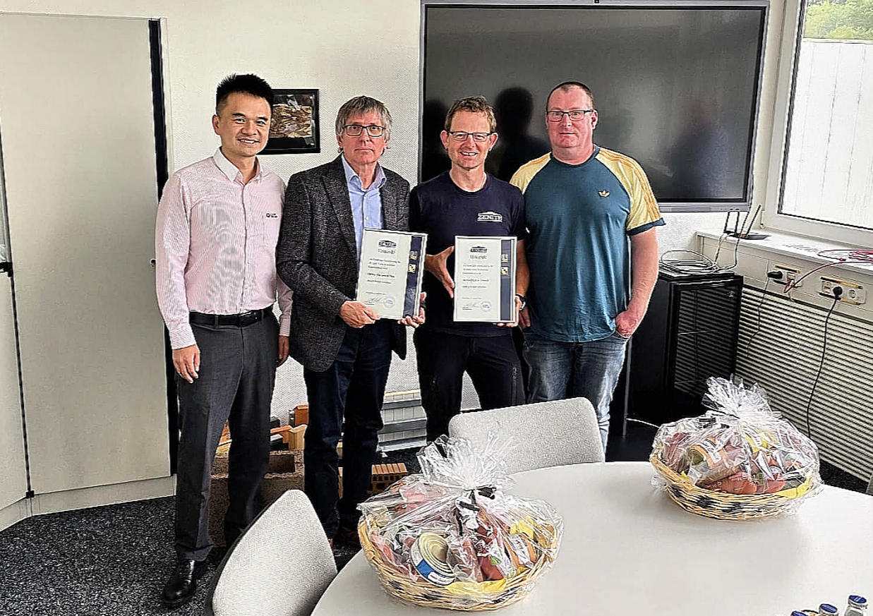 На фона на стабилния напредък на стратегията си за глобализация, Zenith – германското дъщерно дружество на Fujian Quangong Machinery Co., Ltd. – наскоро проведе грандиозно честване на годишнината за своите дългогодишни служители. Събитието отдаде дълбока почит на членовете на персонала, които са останали непоколебими в своите роли в продължение на десетилетия, израствайки заедно с компанията. Това прочувствено и изпълнено с уважение събитие не само потвърди лоялността и отдадеността на служителите, но също така ярко демонстрира дълбоката интеграция на китайската и немската корпоративни култури.